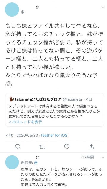さて、5/16に1,500種類以上もある家具の一覧を管理できるチェックシートを公開してみたのですが、Twitterから次のようなご要望を頂きました。